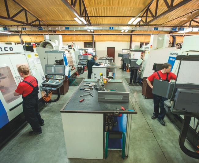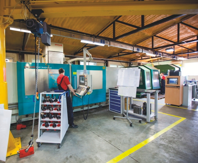 L’azienda utilizza diversi centri lavoro a CNC (con mas- simo di 1.000×1.000×600) con una precisione di lavorazione di 3 centesimi di millimetro.